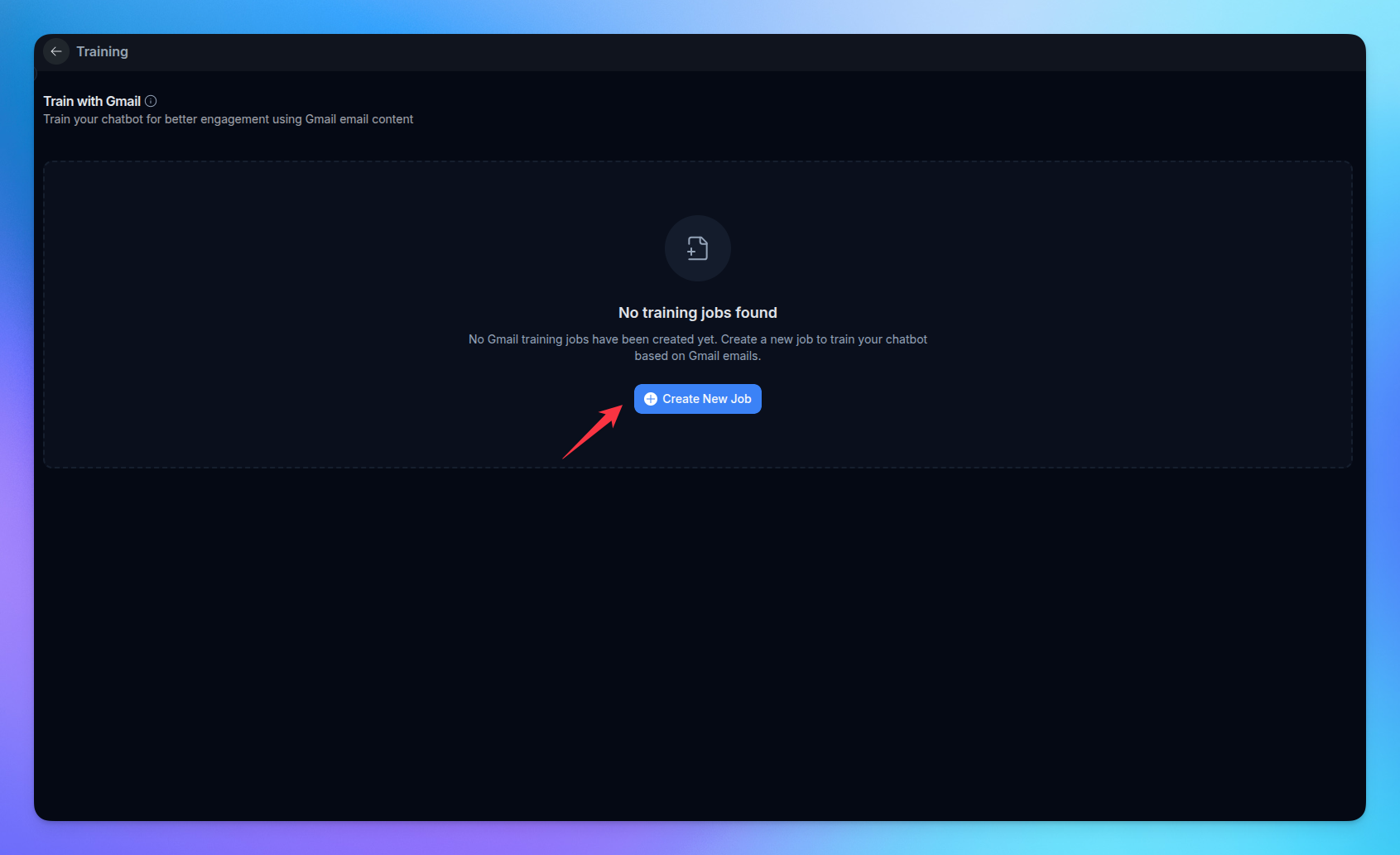 This guide covers the steps to connect your Gmail account and create a new training job. Follow the instructions below to configure the integration and initiate the training process smoothly.